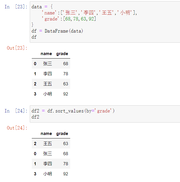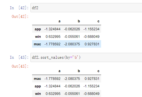 对于DataFrame数据而言,通过指定轴方向,使用sort_index函数可对行或列索引进行排序(添加参数axis=1/0)。要根据列进行 排序,可以通过sort_values函数,把列名传给by参数即可