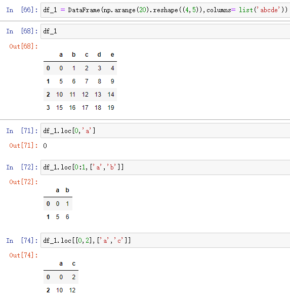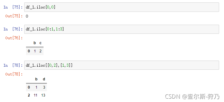 df_1.iloc[[index],[colum]]通过位置选取数据
