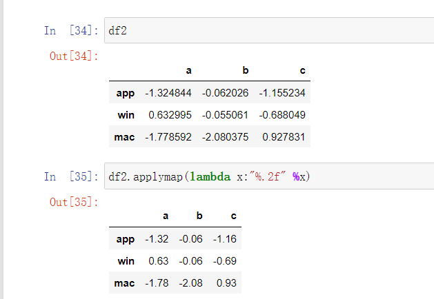 applymap函数可以作用于每个元素,便于对整个DataFrame数据进行批量处理,如图