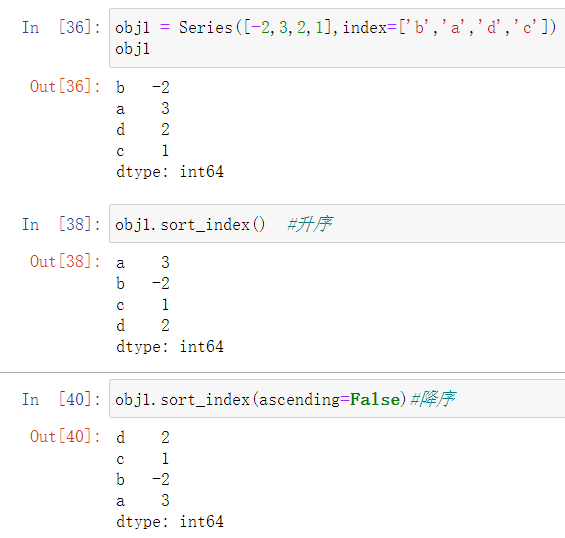 在Series中,通过sort_index函数可对索引进行排序,默认情况为升序,如图