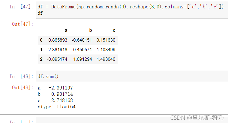 在DataFrame数据中,通过sum函数可以对每列进行求和汇总,与Excel中的sum函数类似,如图