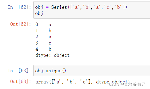 在Series中,通过unique函数可以获取不重复的数组,如图