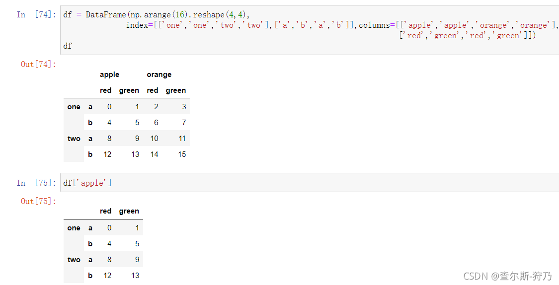 层出化索引时pandas重要的功能之一 ,本节将简单讲解层次化索引的创建过程和使用方法