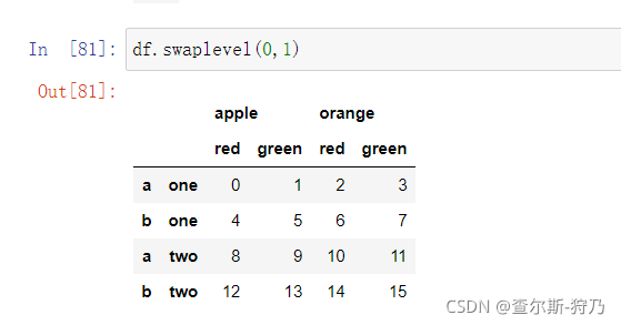 通过swaplevel方法可以对层次化索引进行重排,如图
