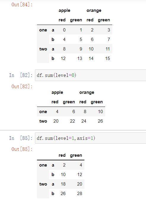 在层次话索引的pandas数据进行统计汇总时,可以通过level参数指定在某层次上进行汇总统计