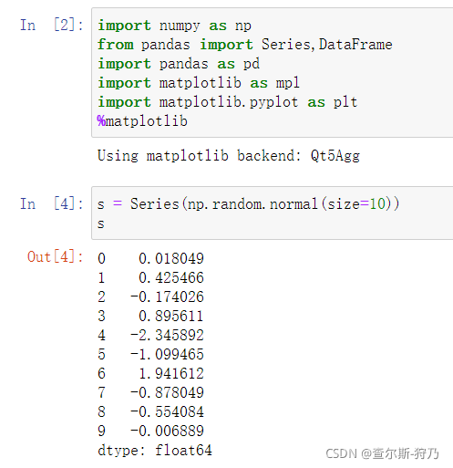 pandas库中的Series和DataFrame中都有绘制各类图标的plot方法,默认情况绘制的是线形图。首先创建一个Series对象