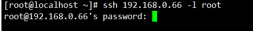 ssh 192.168.0.66 -l root第一次登录会提示一些关于秘钥的信息,这里没截图 直接yes通过就 行