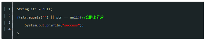 并且s==null 的顺序必须出现在前面,不然同样会抛出java.lang.NullPointerException.