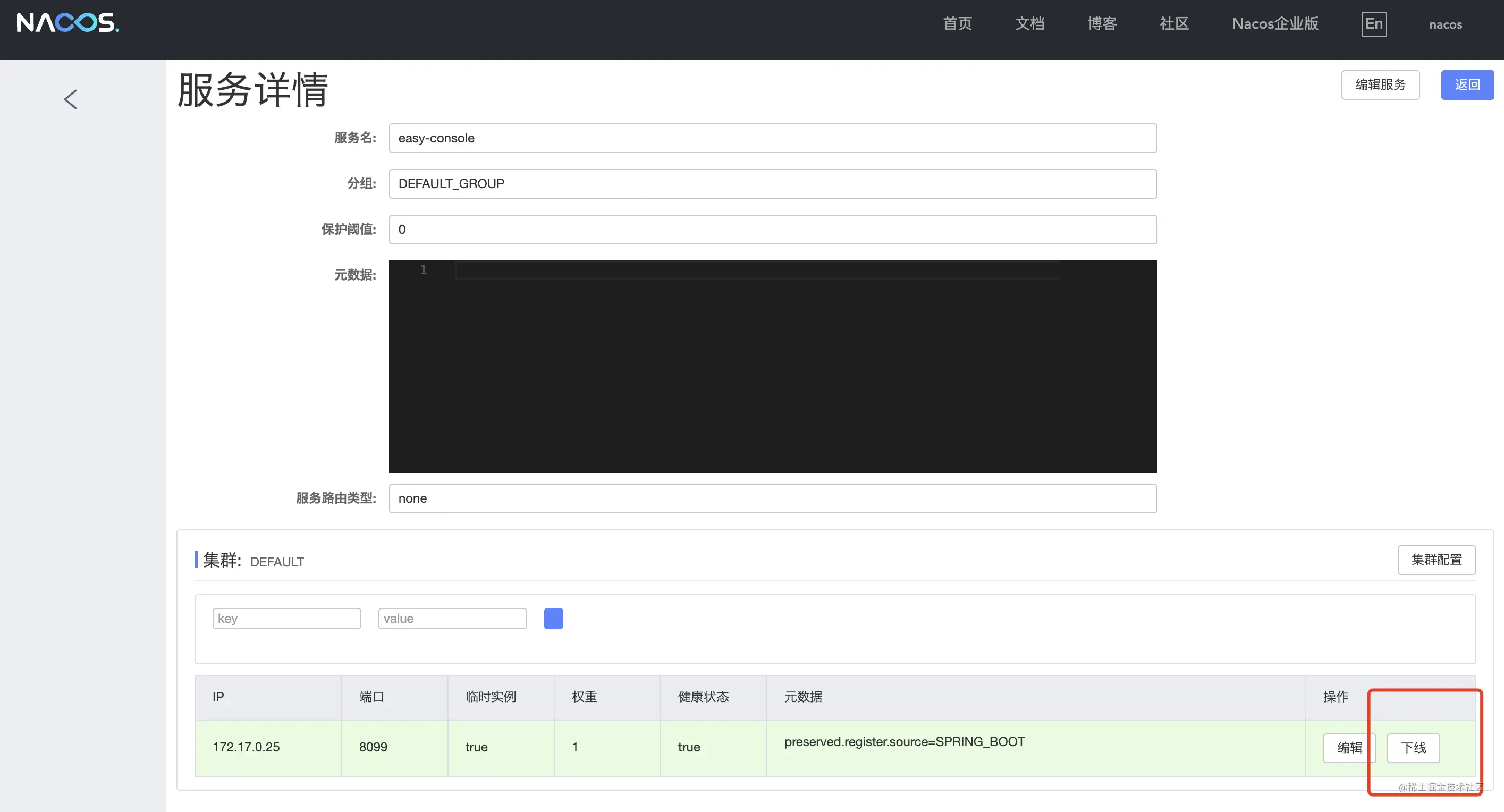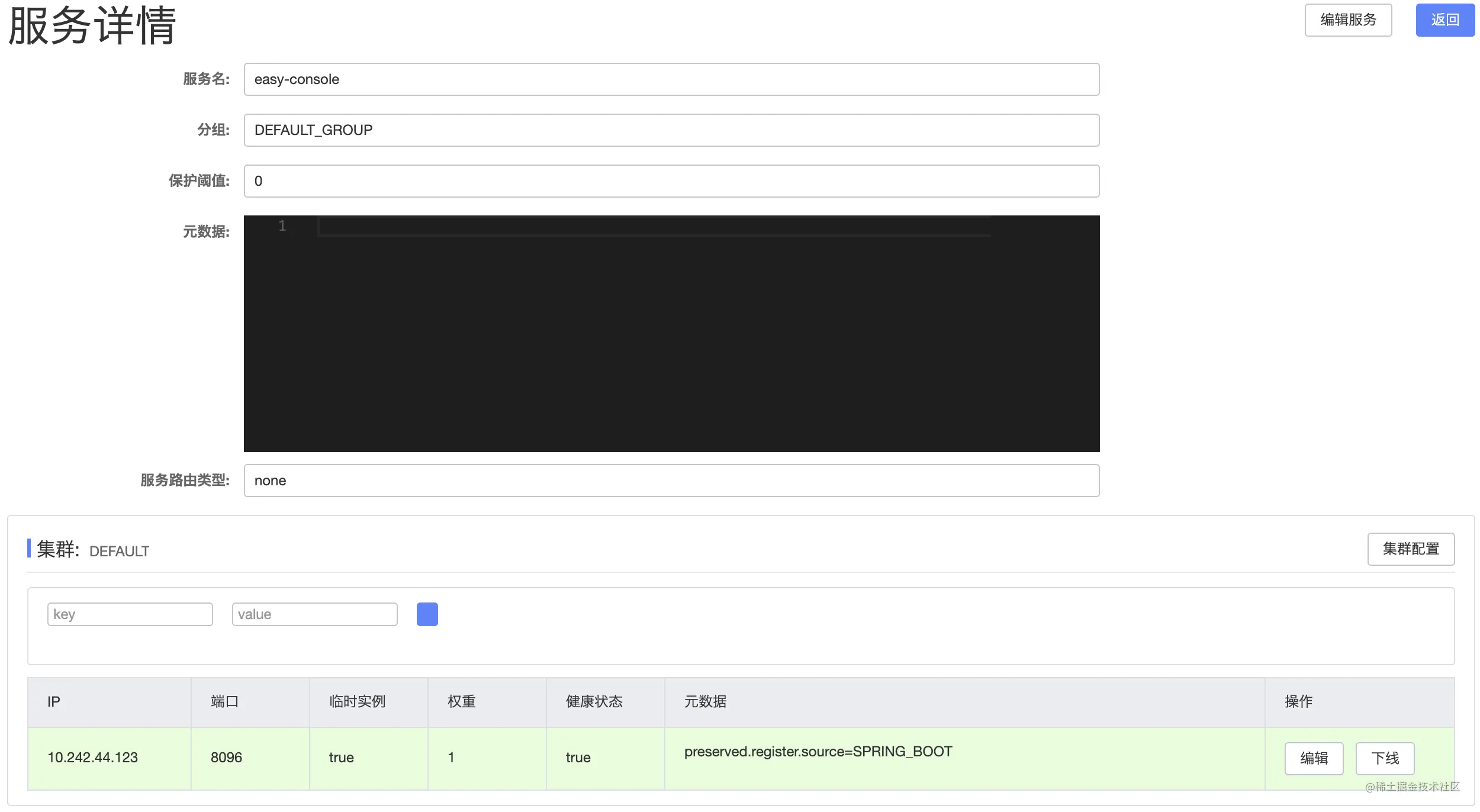 Instance instance = namingService.selectOneHealthyInstance("easy-console", true);