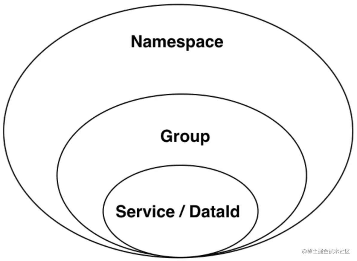 - 分组(Group):次于命名空间的一种隔离概念,属于一个弱隔离概念,主要用于逻辑区分一些服务使用场景或不同应用的同名服务,比如同一个服务的测试分组和生产分组。