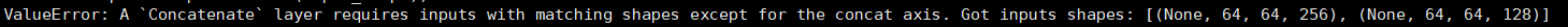 Got inputs shapes: [(None, 32, 32, 512), (None, 32, 32, 256)]。我的图像通道数在axis=3的位置,而别人的代码中却把axis设为1,说明他用theono作为后端。此处,你只需把代码中axis改为3即可运行成功。(注意:我用tensorflow作为后端)