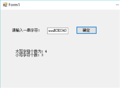 label2.Text = "大写字母个数为:"+numberBig+"\n小写字符个数:"+numberLittle;