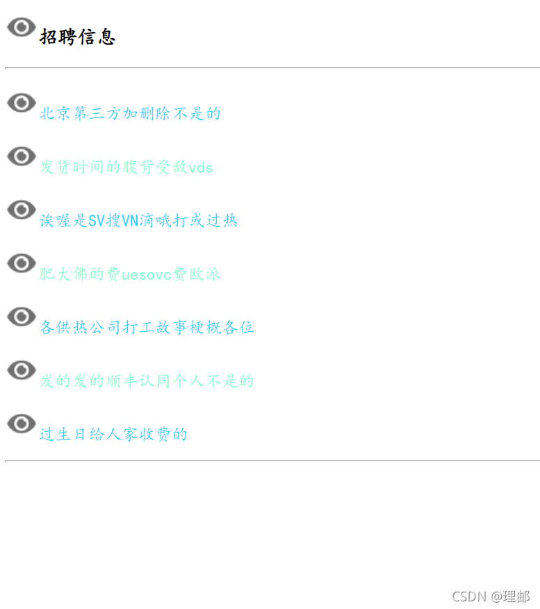 </html>代码中,“:root”用于定义页面所有元素样式,“:before”用于添加文本前面的图标,“:nth-of-type(odd)”用于设置奇数行文本样式,“nth-of-type(even)”用于设置偶数行的文本样式 ,效果图如下: