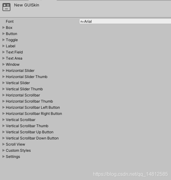 皮肤预设(GUI Skin)可以在Project窗口里面创建出来。里面包含对如下控件样子的设定。GUISkin 是可应用于 GUI 的 GUIStyle 的集合。皮肤 (Skin) 的主要目的将样式应用于整个 UI,而不是应用于单独的控件本身。