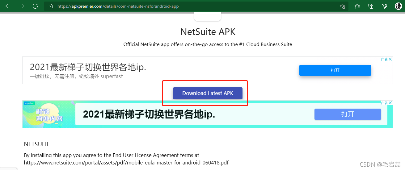3. 粘贴第一步中的NetSuite安装包地址到APK Downloader网站。
