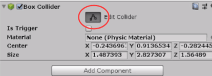 6.在Box collider里点击如图所示的Edit Collider然后调整碰撞位置。