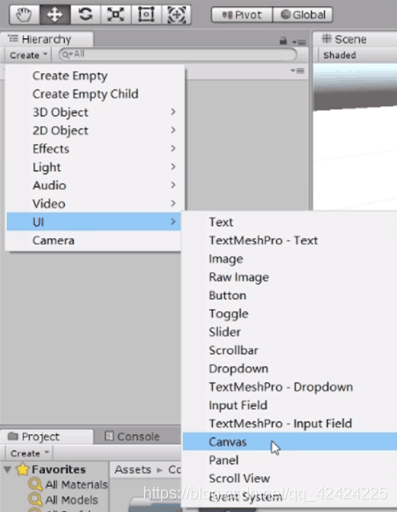 10.之后我们要创建一个2D的画面,我们Create UI里建一个Canvas并命名为List。