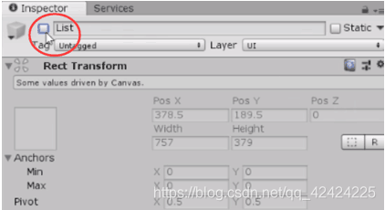 38.然后我们更改一下Canvas和List的属性在Canvas中更改如图所示,List中同理。