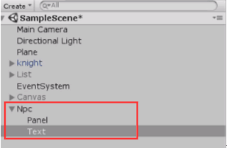 19.再新建一个Canvas并命名为NPC之后在这个页面下新建一个Panel和Text。