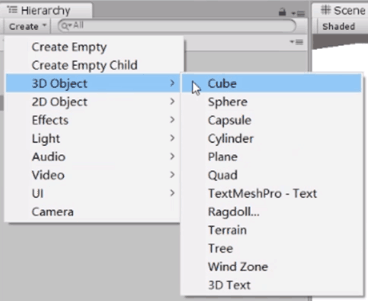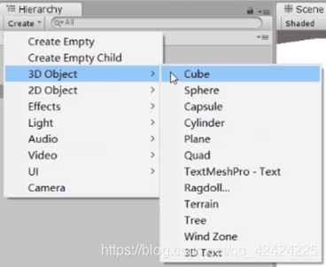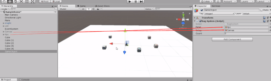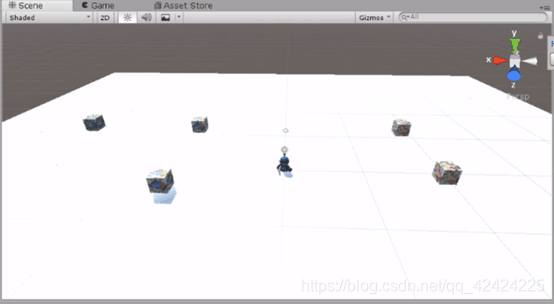 30.在Scene界面中放在相应的位置上,然后给这几个Cube附上图