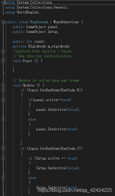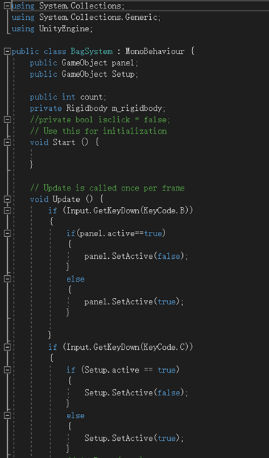 35.然后需要实现控制键盘上的按键来控制背包的消失与重现。新建一个脚本并命名为BadSystem。