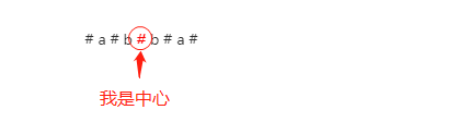 这种情况我们的算法就会失效,因为此时的中心是两个元素,那其实我们可以加一些出来逻辑,在空格之间加入一个不存在于字符串中的字符,此处以 # 作为不存在的字符为例,处理后,字符串变为了如下:
