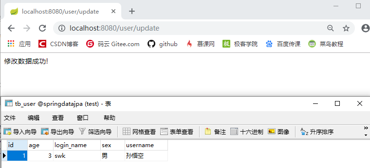 * 修改用户对象数据,持久化对象修改会自动更新到数据库