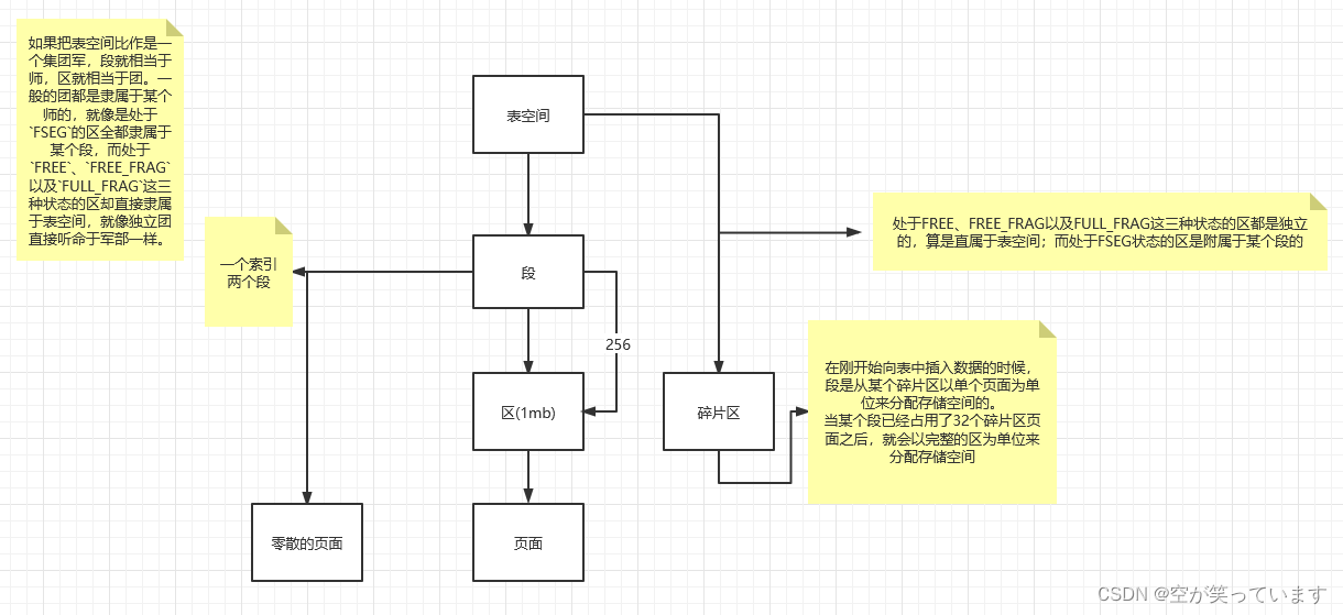 段的定义:段其实不对应表空间中某一个连续的物理区域,而是一个逻辑上的概念。