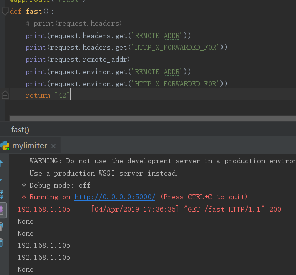 request.headers.get('REMOTE_ADDR') request.headers.get('HTTP_X_FORWARDED_FOR') request.remote_addr request.environ.get('REMOTE_ADDR') request.environ.get('HTTP_X_FORWARDED_FOR')
