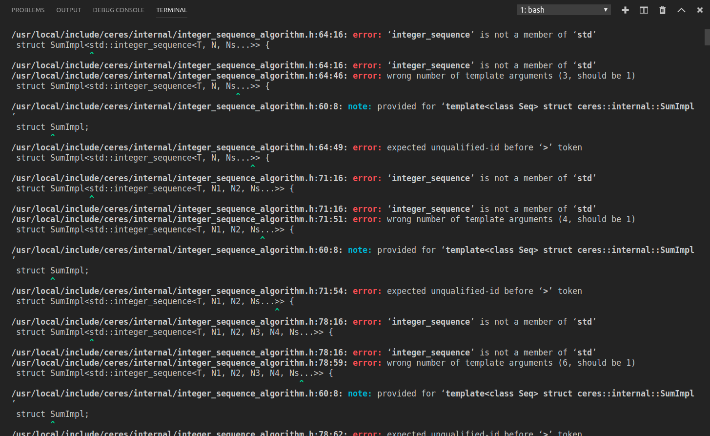 原因: 安装的ceres库版本与eigen库版本冲突, 我的eigen库版本为3.3.7, 将ceres换为1.14.0 版本的就能解决问题