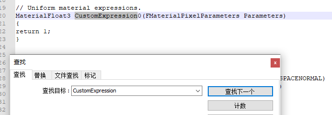 打开HLSL查看器,复制代码到文本,搜索CustomExpression
