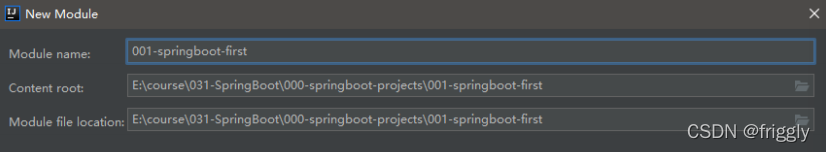 (4)设置模块名称、Content Root 路径及模块文件的目录,然后点击finish即可