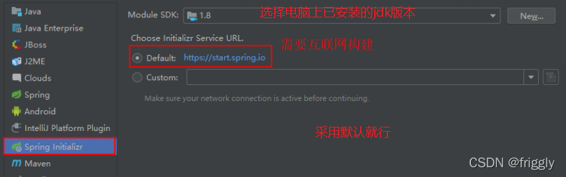 (1)创建一个 Module,选择类型为Spring Initializr 快速构建