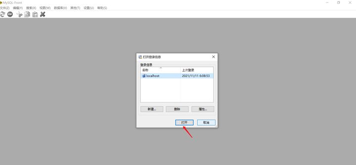 在SQL_Front安装完成后,点击旁边的“管理”按钮,选择打开localhost本地数据库。