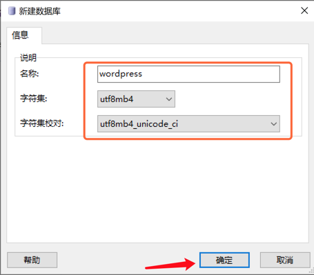 这时localhost会需要我们对数据库进行定义,我们只需要输入
