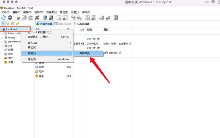 这时可能会跳出提示错误,我们不用管它,点击确认即可。接着我们在localhost上点击右键,在下拉菜单中选择“新建”和“数据库”