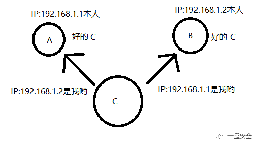 ARP协议的缺点是,他不会去验证这个消息是不是假的,也就是说,如果这个时候有个大坏蛋C对A说:IPXXX是我。那A就会在小本本上写下来:IPXXX的物理地址是C,然而实际上这个IP应该是B的。A不会验证,B也不会验证,这样C就把两边都给骗了。之后C就能收到两边的消息了