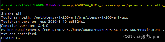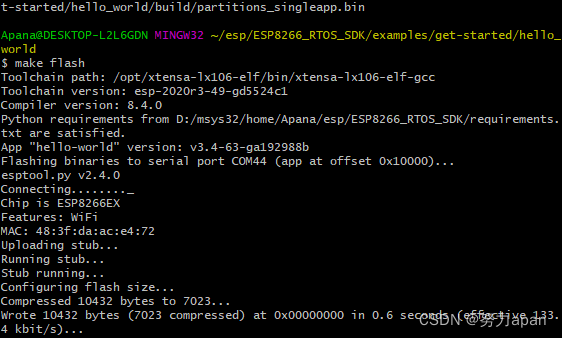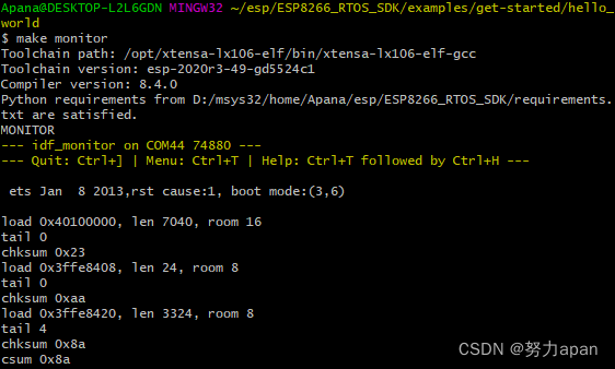 cd ~/esp/ESP8266_RTOS_SDK/examples/get-started/hello_world