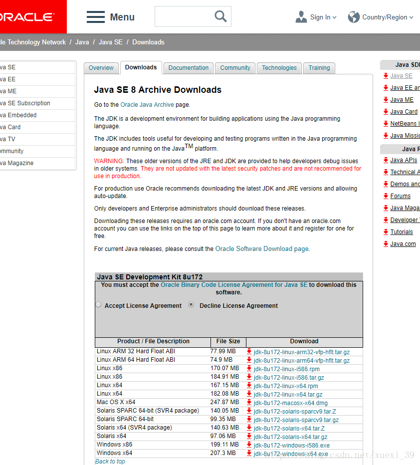 4、进入下载界面,或者直接利用地址:https://www.oracle.com/technetwork/java/javase/downloads/index.html,进入