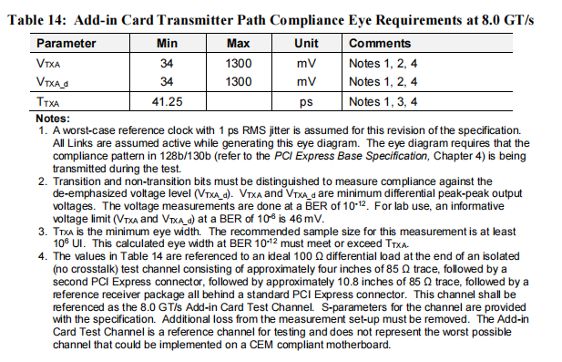 符合CEM标准的System Board和Add-in Card必须满足以下的眼图标准。