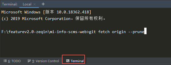 通过命令,在webstrom中的Terminal中输入命令:git fetch origin --prune