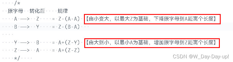 可得,由小变大公式:rev='Z'-(ch-'A'); 由大变小公式:rev='A'+('Z'-ch);