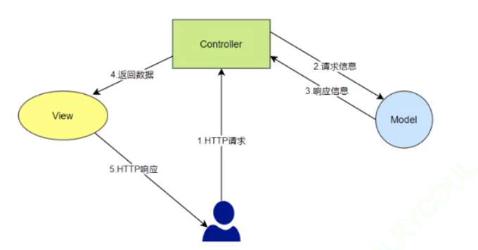 Controller(控制器):是应⽤程序中处理⽤户交互的部分。通常控制器负责从视图读取数据, 控制⽤户输⼊,并向模型发送数据。