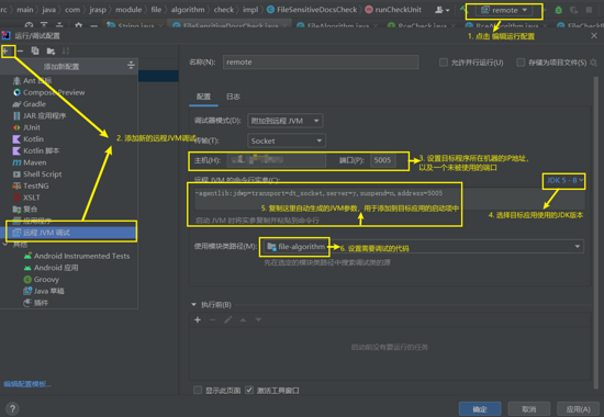 - 将IDEA自动生成的远程JVM启动参数调加到目标应用的启动参数中.