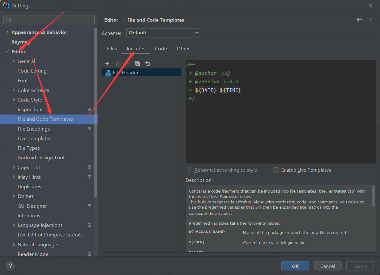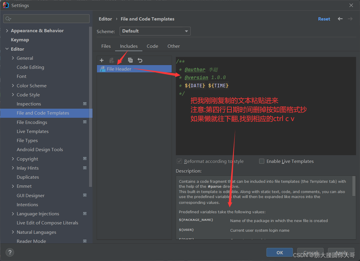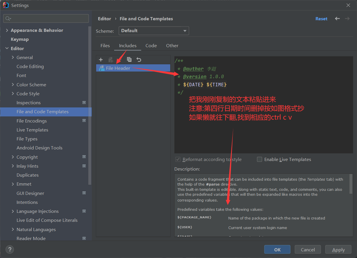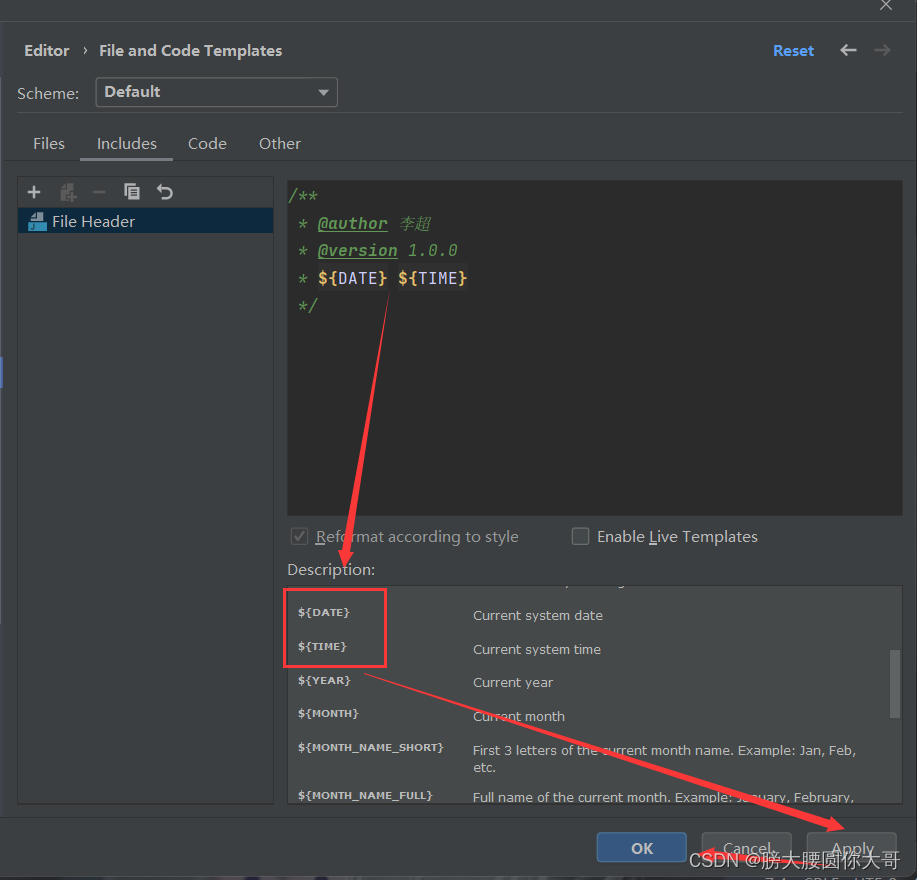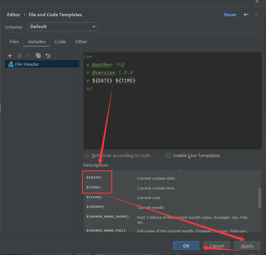 Apply ==>OK就好了 这样每次新建类就会自动生成这些信息!