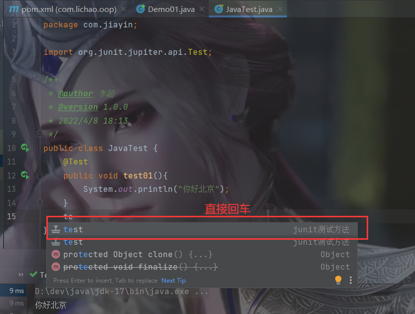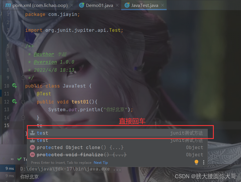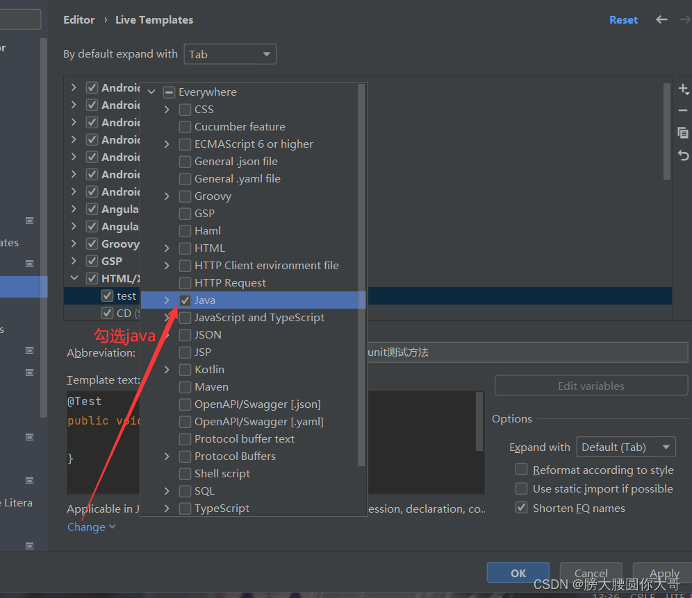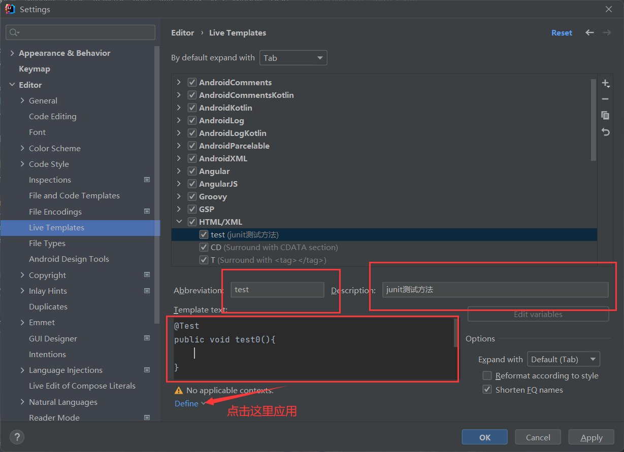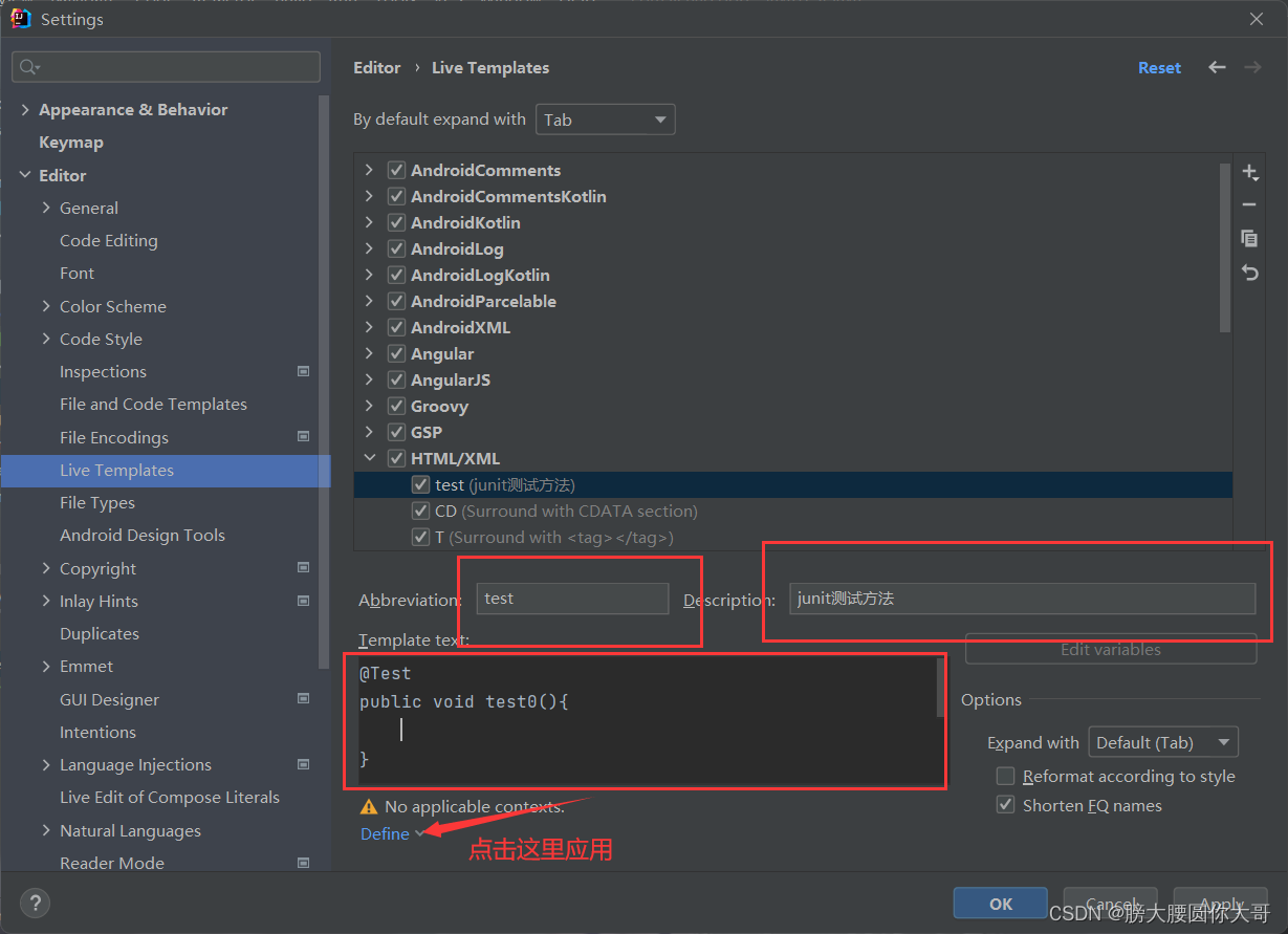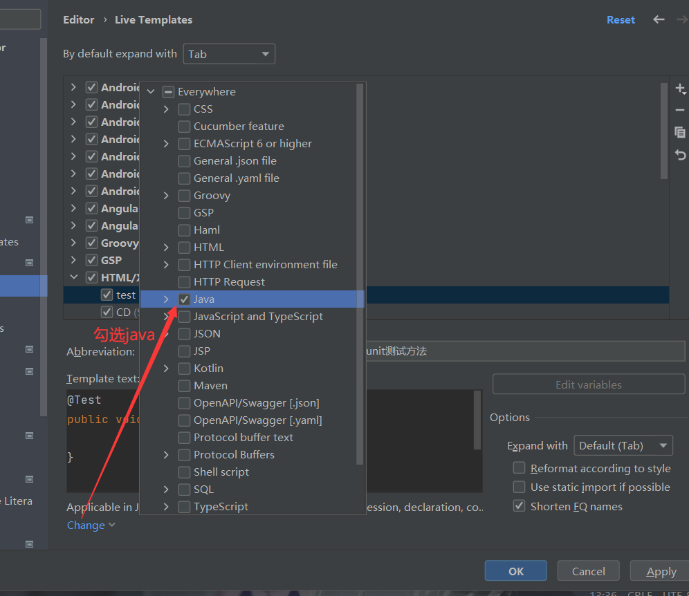 接下来我们在设置一个快捷键 输入test就能引出我们的测试方法