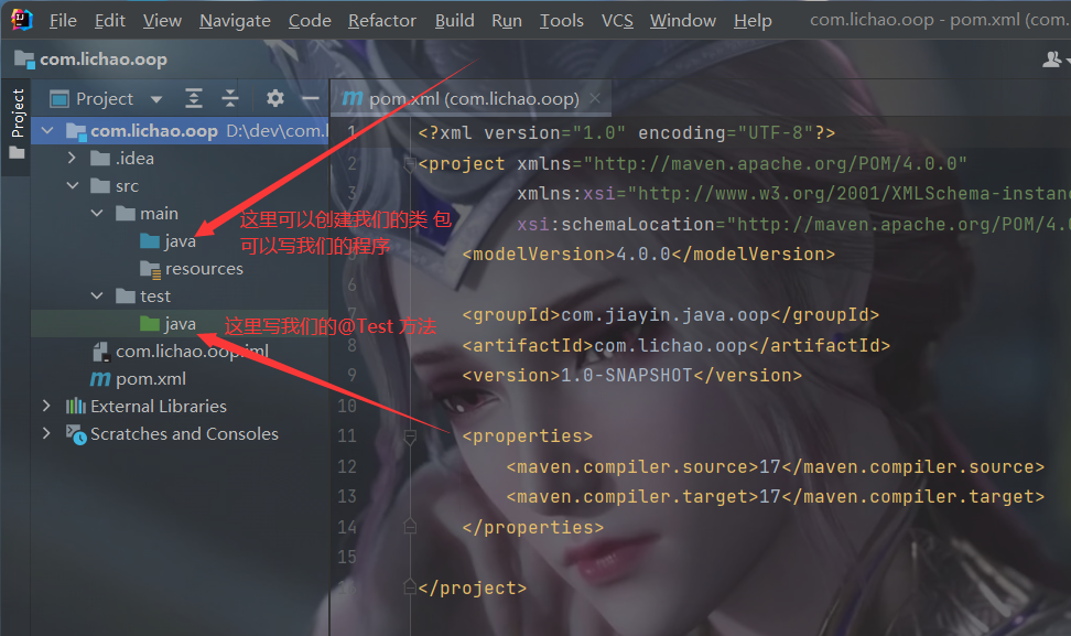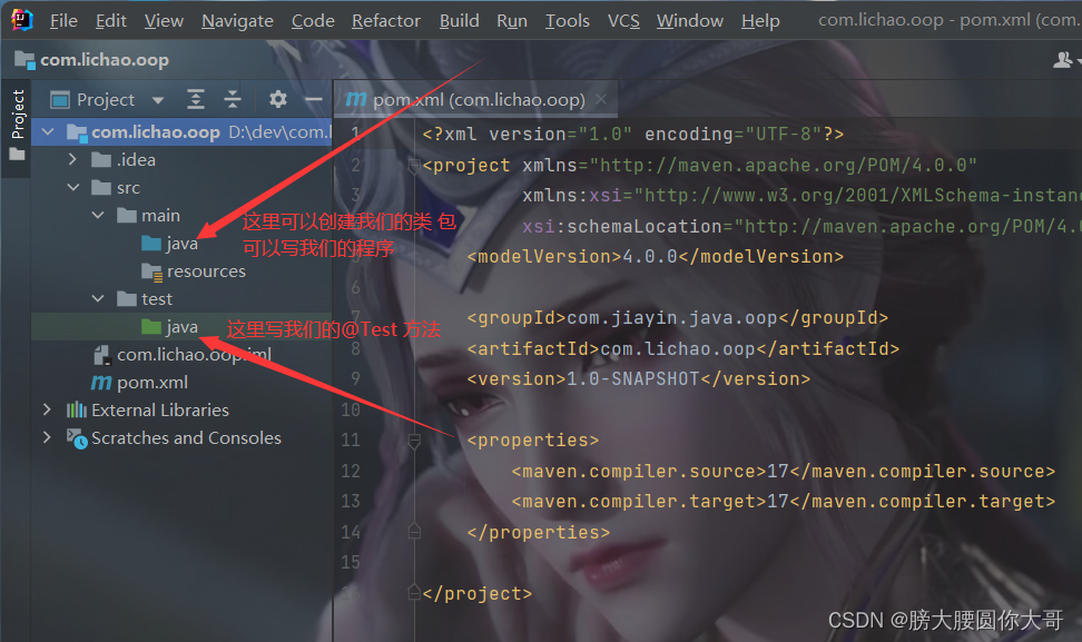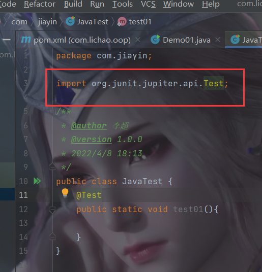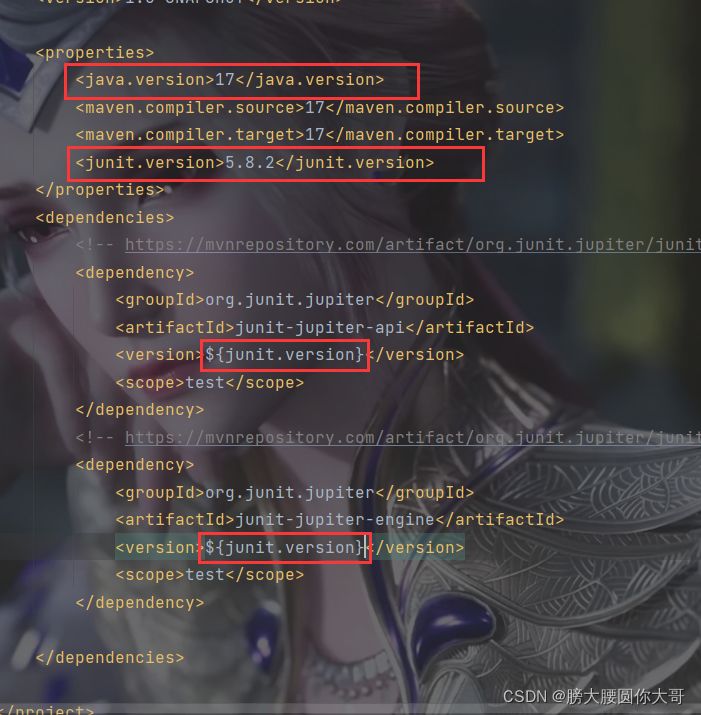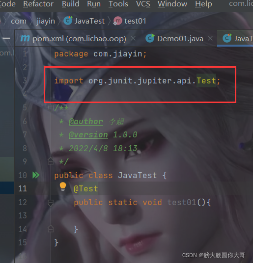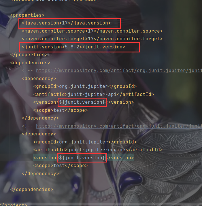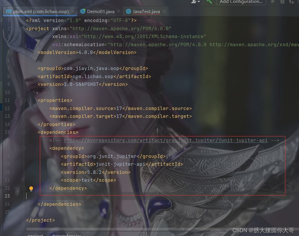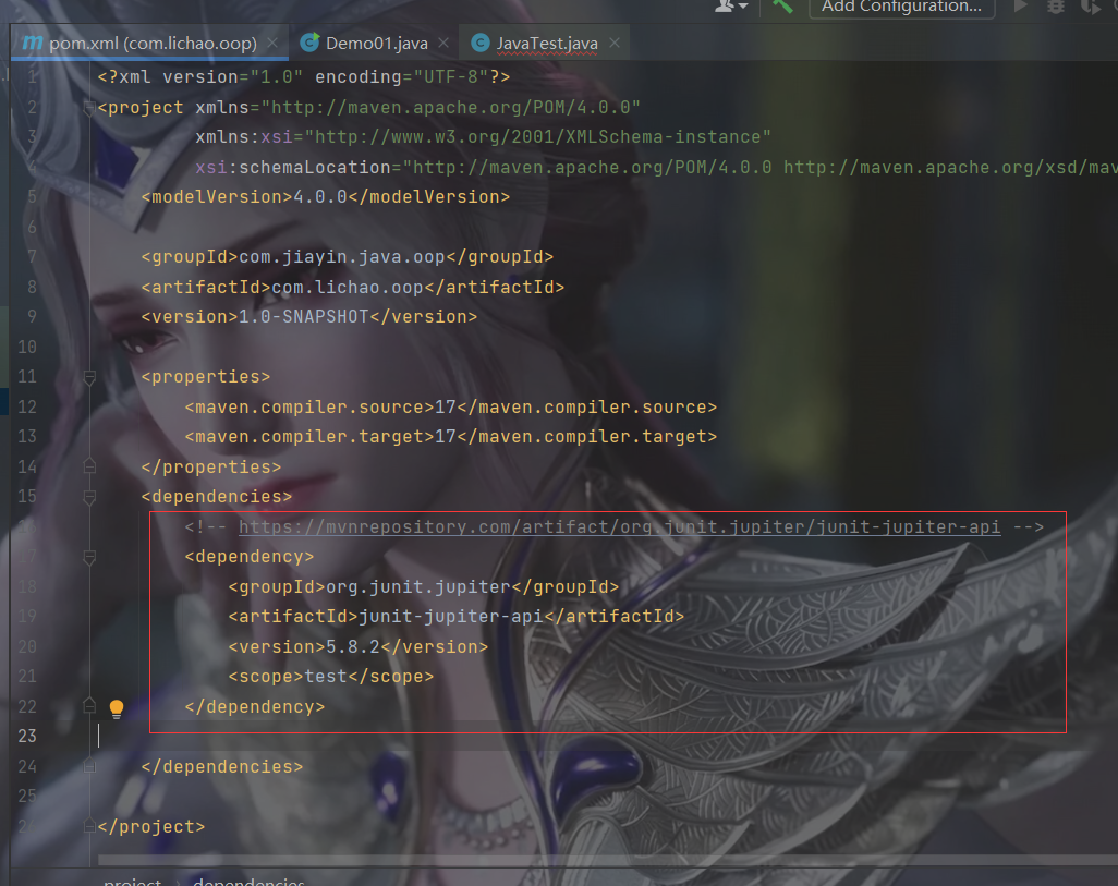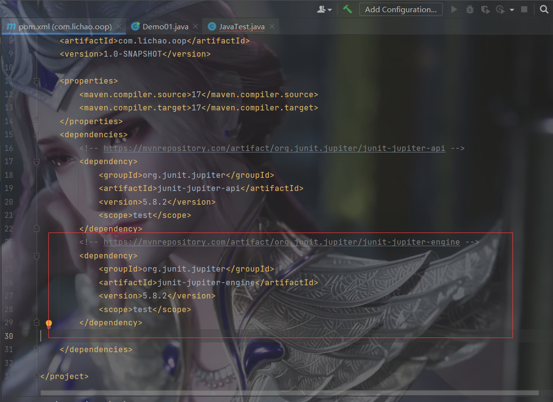 显而易见,报错了,这是因为没有junit依赖的原因,这时就需要我们的pom文件引入junit依赖