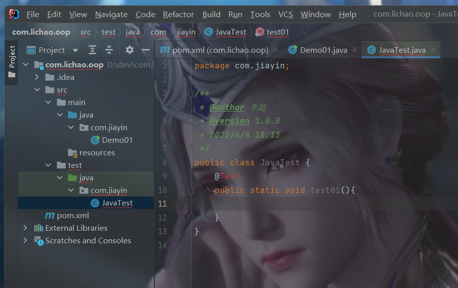 在上图绿色文件夹的java中创建测试类方法 首先创建一个同名的包,在包里创建测试类就叫JavaTest 如图:
