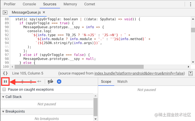 Hermes通过实现Chrome检查器协议来支持Chrome调试器,这意味着,我们可以直接使用Chrome的DevTools工具来直接调试运行JavaScript代码。