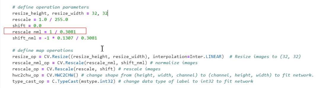 这里的rescale_nml=1/0.3081和下面shift_nml=-1*0.1307/0.3081,这里的小数0.3081和0.3081是怎么得出的呢?